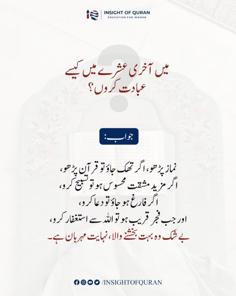 میں آخری عشرے میں کیسے عبادت کروں؟