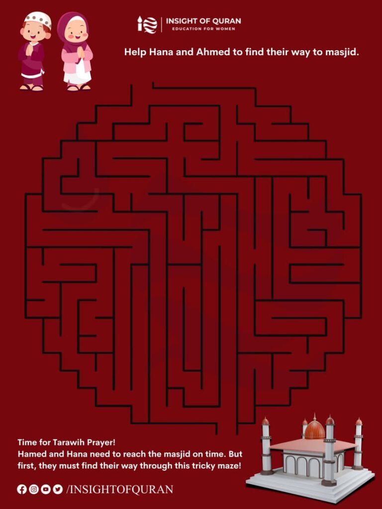 Can you help Hana and Ahmed find their way to the mosque for Taraweeh prayer?